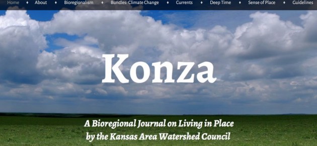 Konza, the journal of the Kansas Area Watershed Council, is an online bioregional journal dedicated to deepening our connection with the earth and sky through engaging with words and images, sound and space. Through reading, listening to, viewing, and considering more deeply the nuances of the prairie and the Kansas river watershed, we can better understand how to live with greater meaning and in greater balance with the natural world. See our latest issue here, and see submission guidelines here.